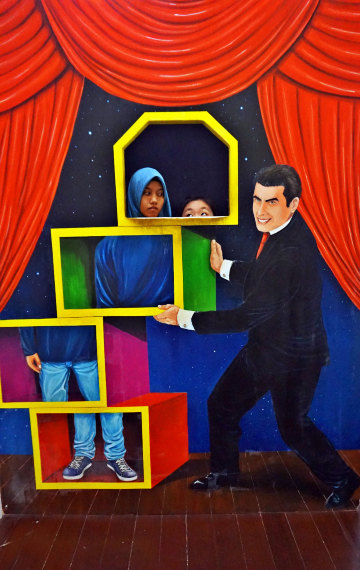 Didalam rumah 3D ini anda dapat melihat berbagai lukisan yang dapat mengelirukan mata yang memandang. In 2012 Penang commissioned Lithuanian artist Ernest Zacharevic to create a street art. In 2015 he was honoured by the Penang State Government by being invited to hold his Retrospective at the Penang State Art Gallery Museum.