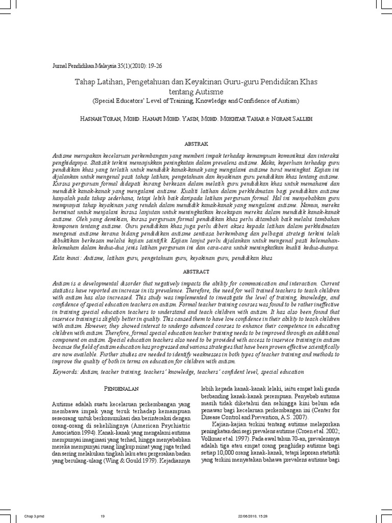 Tahap Latihan Pengetahuan Dan Keyakinan Guru Guru Pendidikan Khas Tentang Autisme Pdf